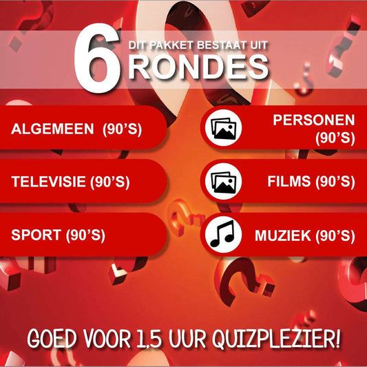 Wil je een pubquiz kopen met een origineel thema, zodat jij en je vrienden, familie of collega’s een leuke avond hebben? Met onze spraakmakende, grappige vragen verbreed je je algemene kennis terwijl je samen in een deuk ligt. Of je nu thuis van een themapubquiz wilt genieten of een quiz op locatie wilt laten verzorgen; bij ons kan je de ideale quiz bestellen! Wil je meer weten over onze quizzen? Neem dan contact met ons op.
